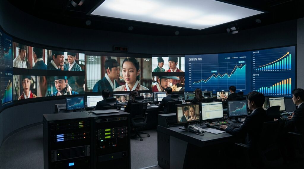 실제로 MBC에서 방영 중인 금토 드라마 ‘무법지대’의 경우, 본방송 시청률은 8%대에 머물고 있으나 넷플릭스 글로벌 TOP 10(비영어권) 부문에서 3주 연속 5위권 내에 진입하며 해외 시장에서 엄청난 수익을 창출하고 있습니다. 이는 한국 드라마의 경쟁력이 국내 시장을 넘어 전 세계로 뻗어 나가고 있음을 보여주는 단적인 예시입니다. 전문가들은 “이제는 시청률 전쟁이 국내 안방극장을 넘어 글로벌 플랫폼에서의 점유율 싸움으로 확장되었다”고 진단합니다.