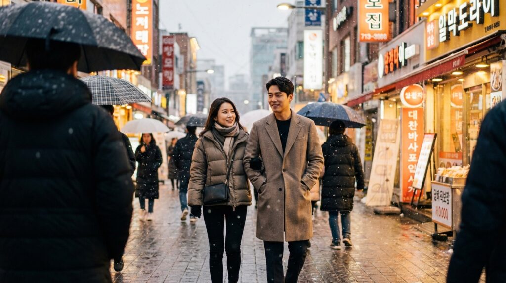 조용한 심야 데이트와 커플 아이템 포착